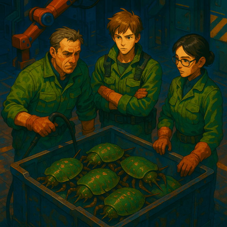 Time: Two hours before Kael and Sira’s cigarette breakLocation: Nishimura Mining Colony, Primary Engineering Lab The loading gantries of Extraction Zone D clanged in rhythm